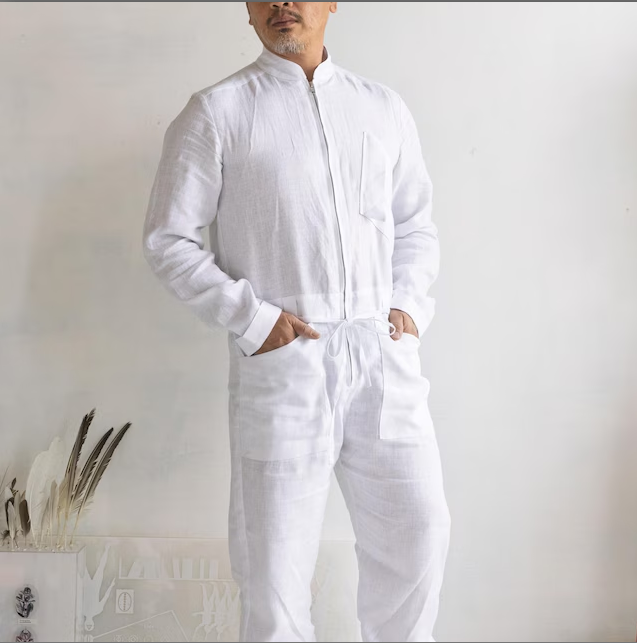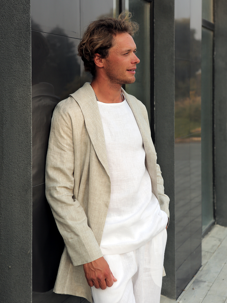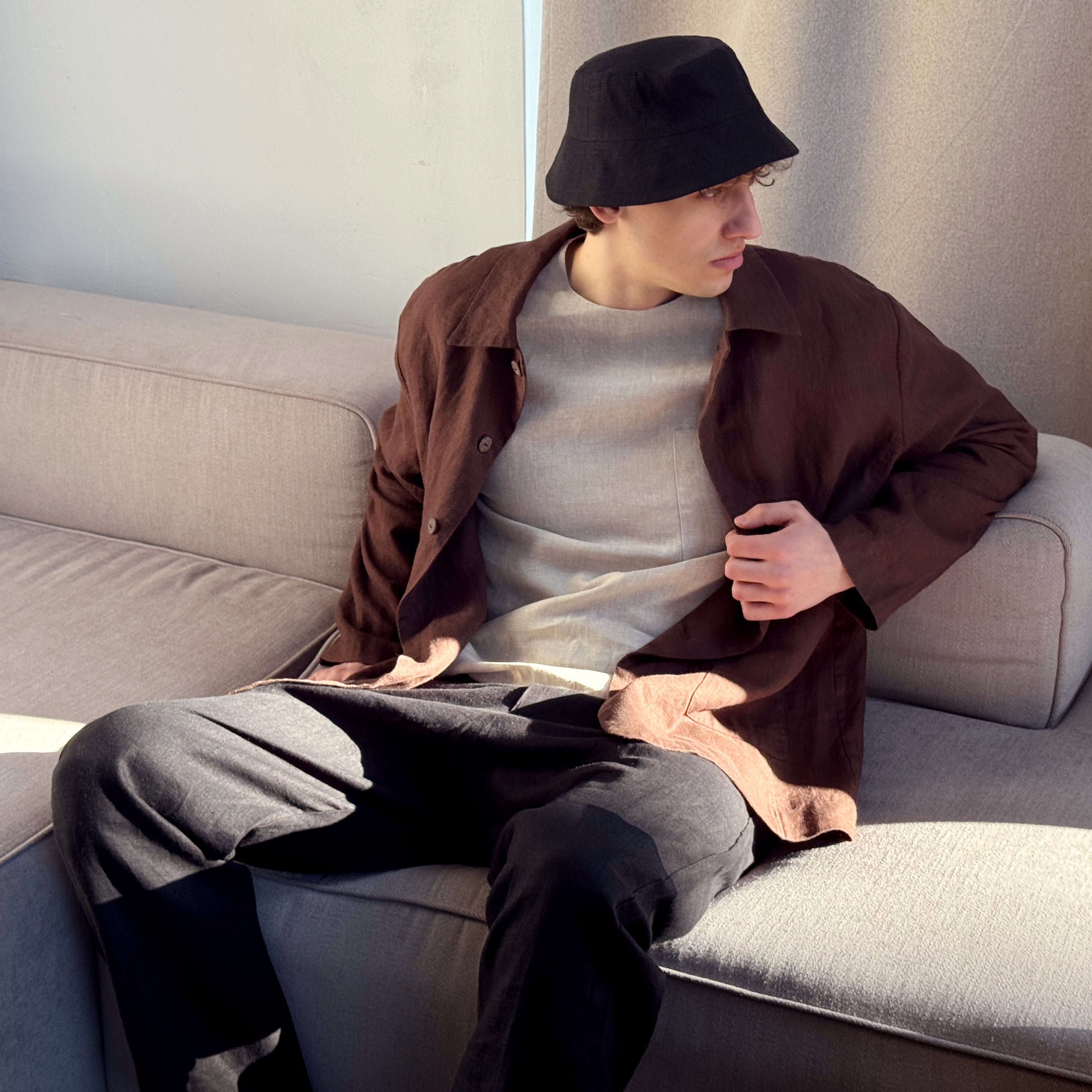 Here you can find men’s linen bomber jackets, cardigans, and trench coats.