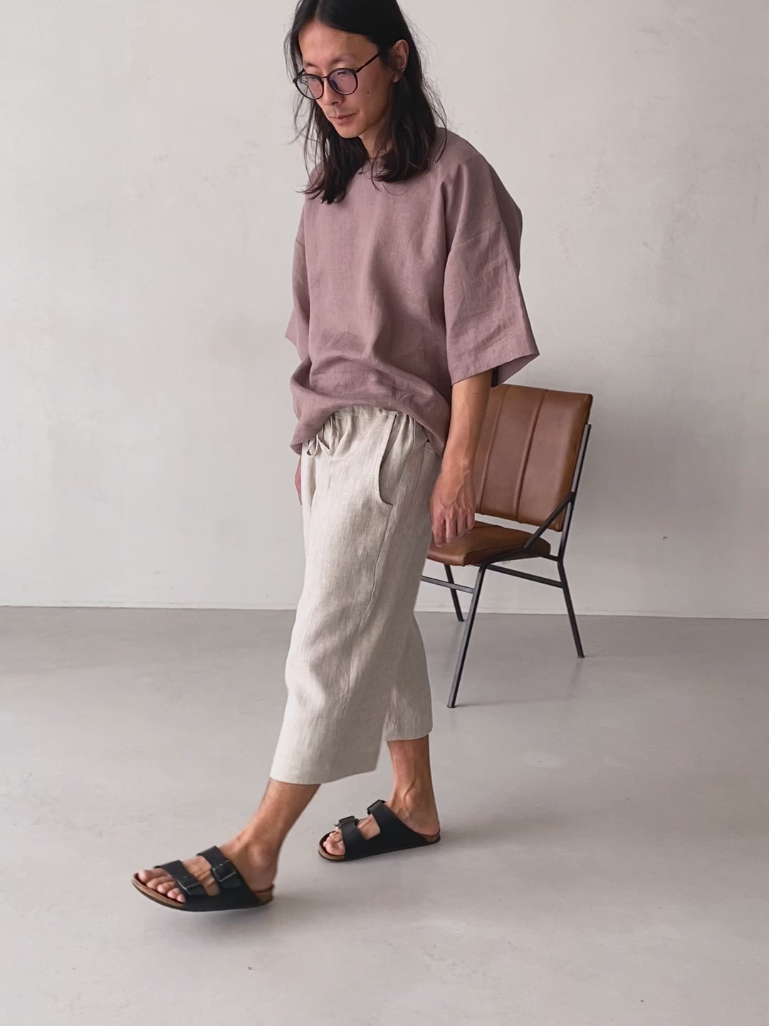 We use only pure linen — no synthetics. We love its lightness, texture, and noble imperfection, as well as its hypoallergenic, antiseptic powers and wrinkle-friendly nature.