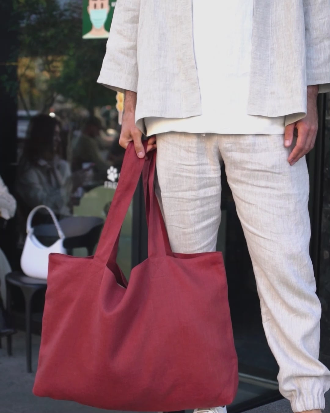The linen tote bag is made from 100% Linen, unisex, and has one inside pocket. Take it with you for a walk, to the grocery store, or on vacation. Begin your zero-waste lifestyle with the new eco-friendly bag.