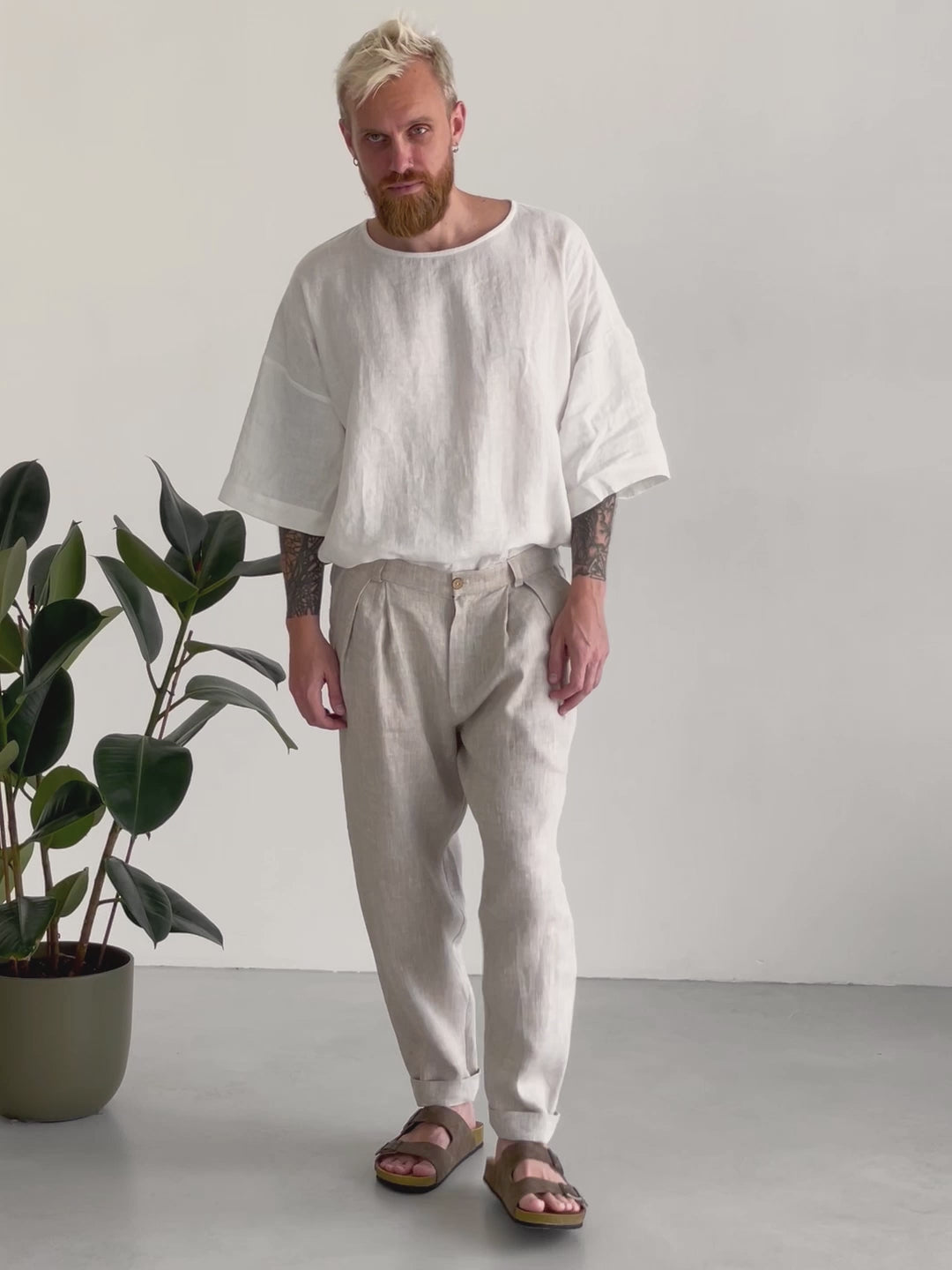 Comfortable and stylish men’s linen pants, 100% Linen. These pants are versatile, they are cozy and comfortable outdoors as well as at home. The fabric is breathable and takes the body shape, over time it becomes softer.