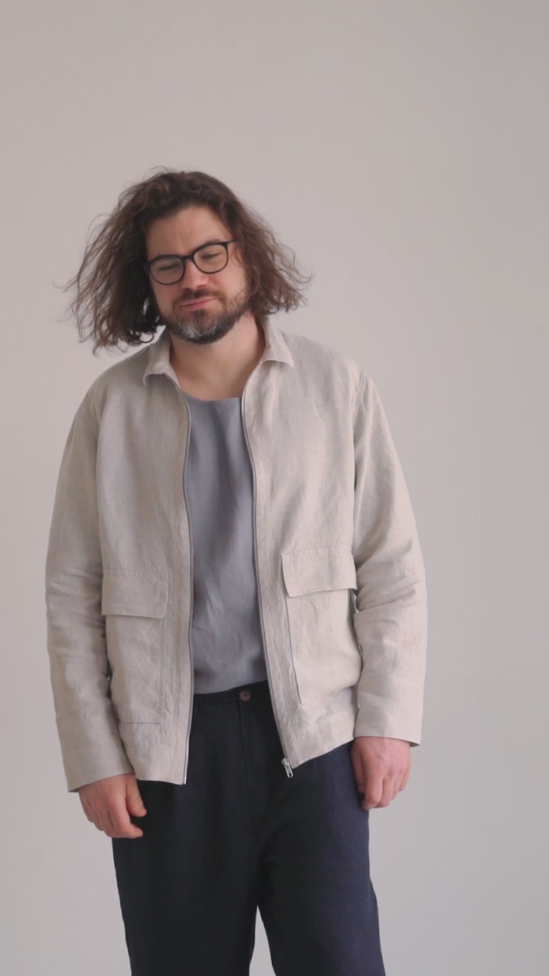 Men’s Linen Bomber Jacket BERGAMOT in Beige