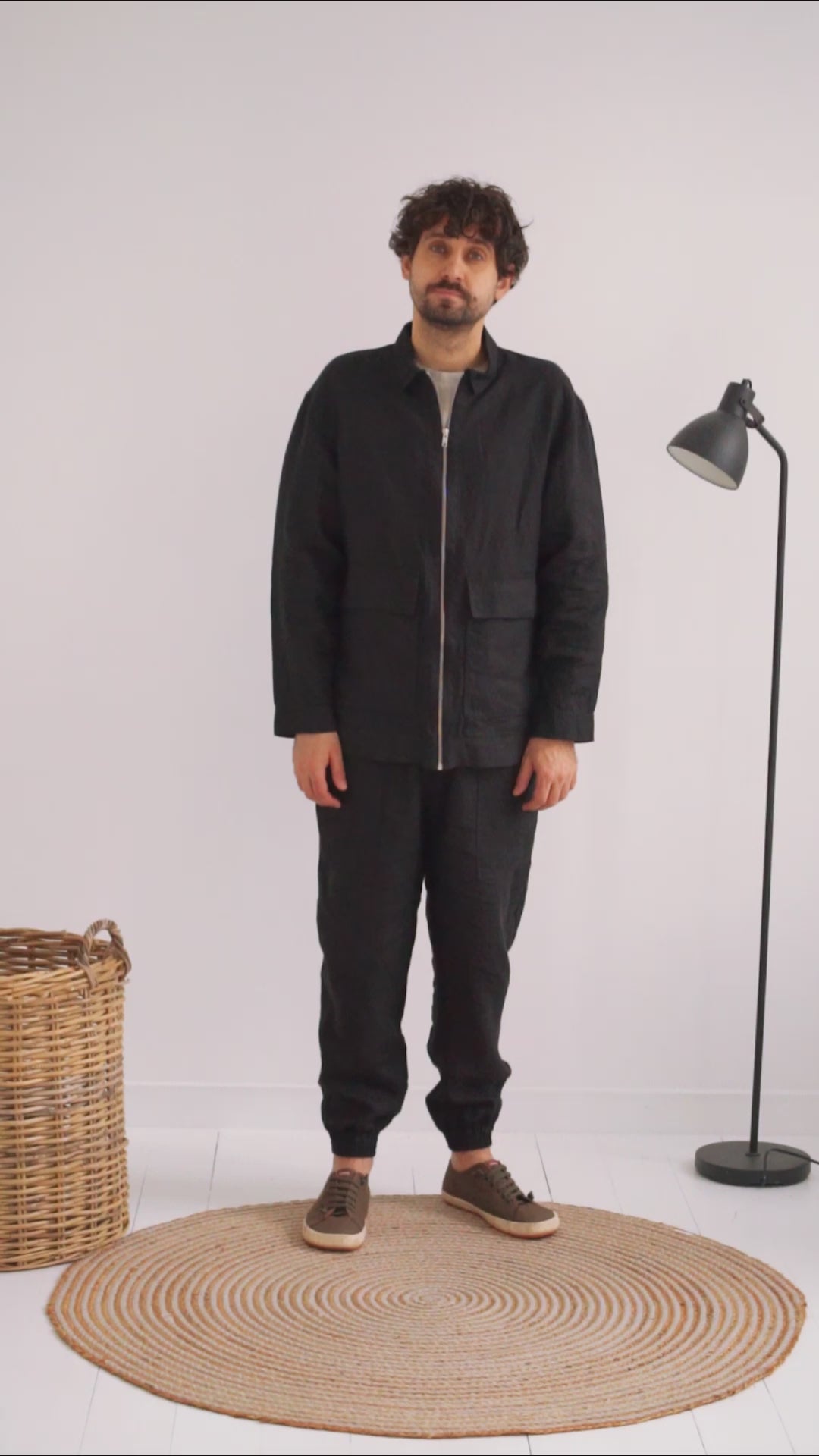 Men’s Linen Bomber Jacket BERGAMOT in Black