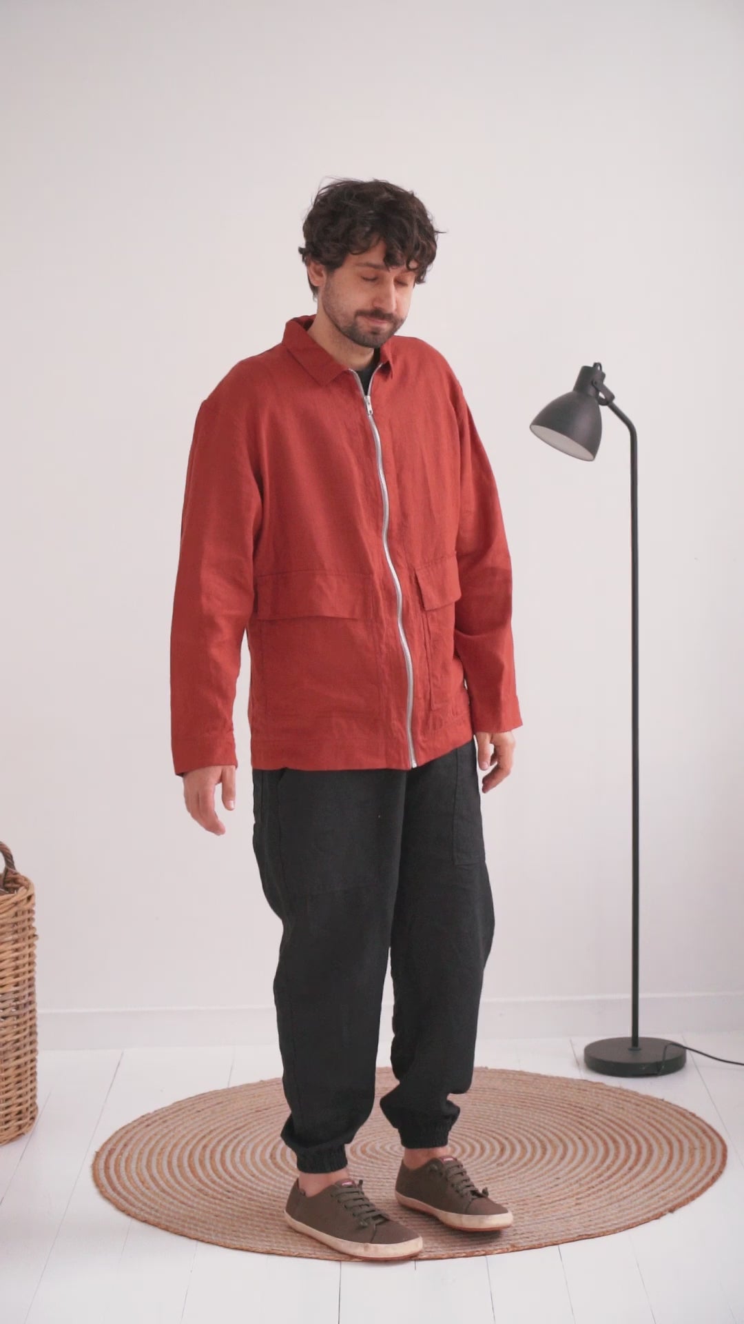 Men’s Linen Bomber Jacket BERGAMOT in Terracotta
