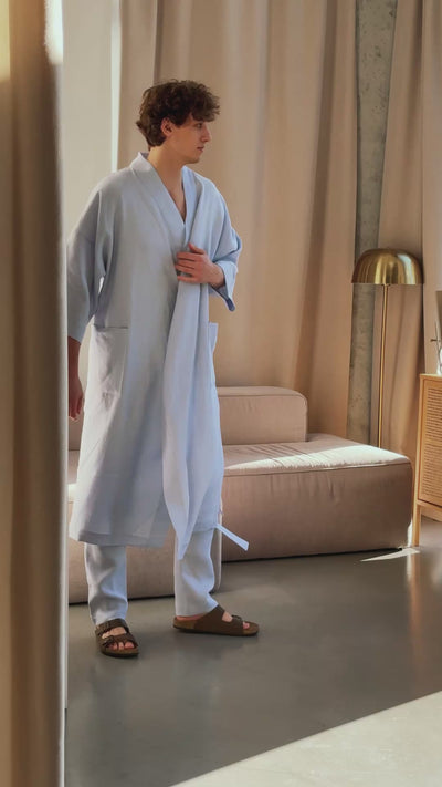 The kimono is perfect for lazy weekend mornings, natural linen fabric is breathable and pleasant to the touch, you will feel a new burst of energy as soon as you wear the linen robe after a busy workday.