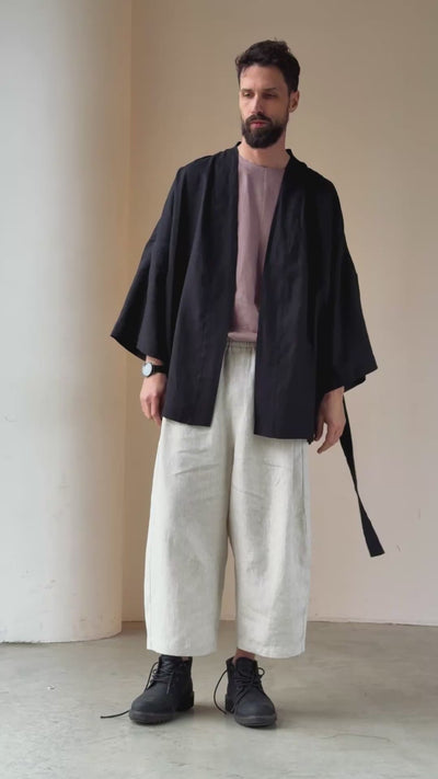 Transformable Men’s Linen Kimono Jacket (Kimono-to-Wrap Skirt)
