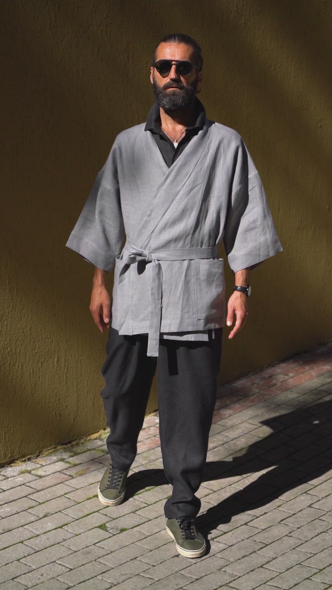 Comfortable men’s linen kimono.