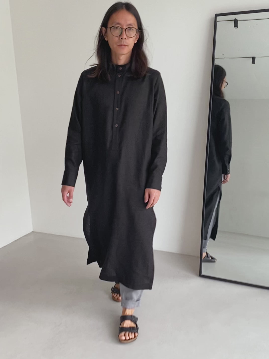Men’s Long Linen Shirt, Kaftan CYPRESS in Black