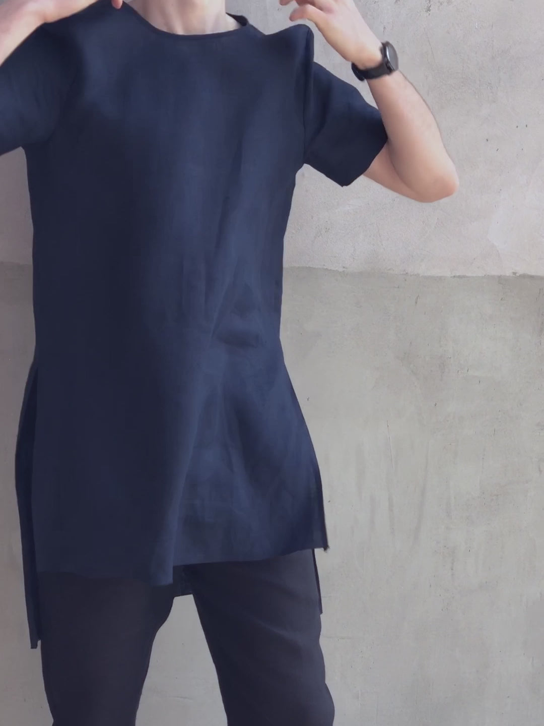 Men’s Long Linen T-Shirt LINDEN in Dark blue