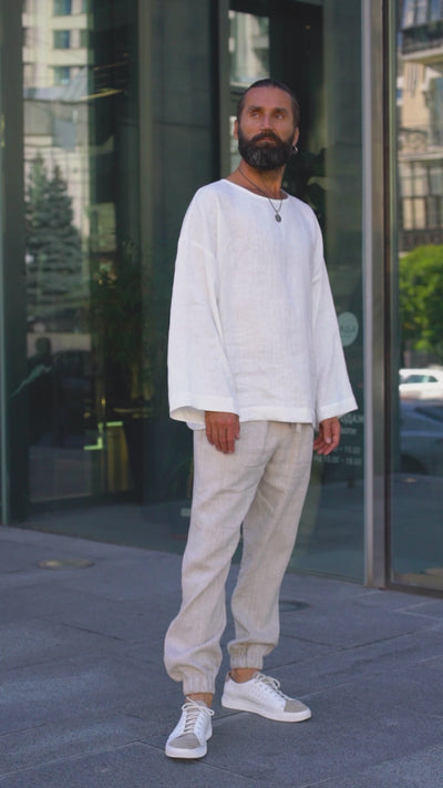 Men’s Linen oversized sweatshirt is made from 100% Linen and available in a variety of colors. This sweatshirt is versatile, it is cozy and comfortable outdoors as well as at home.