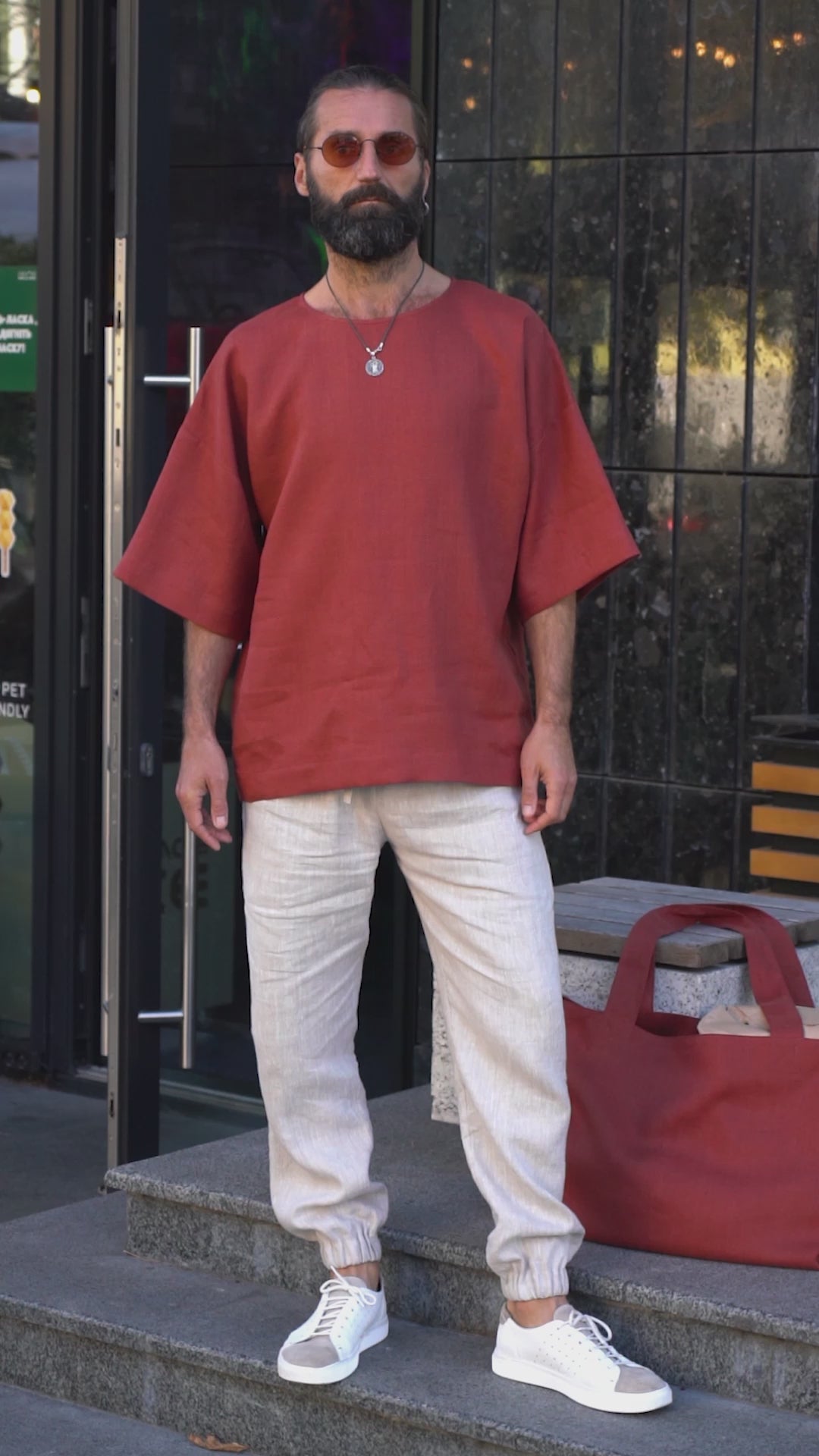 Men’s Oversized Linen T-Shirt LOTUS in Terracotta