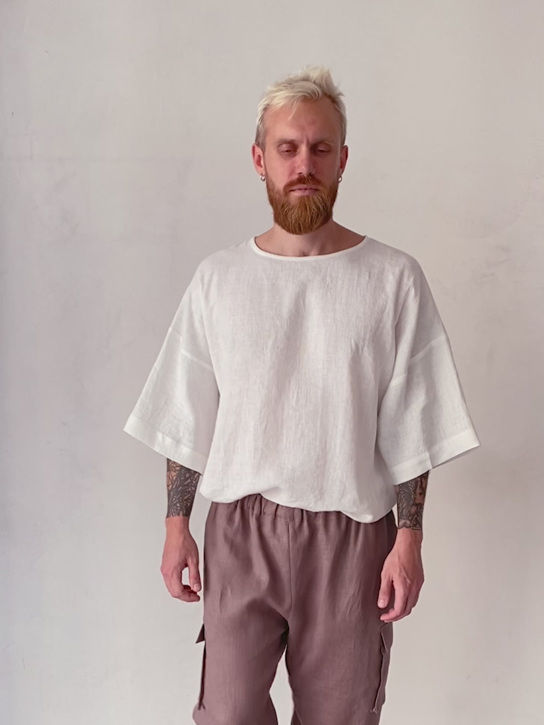 Men’s Oversized Linen T-Shirt LOTUS in White