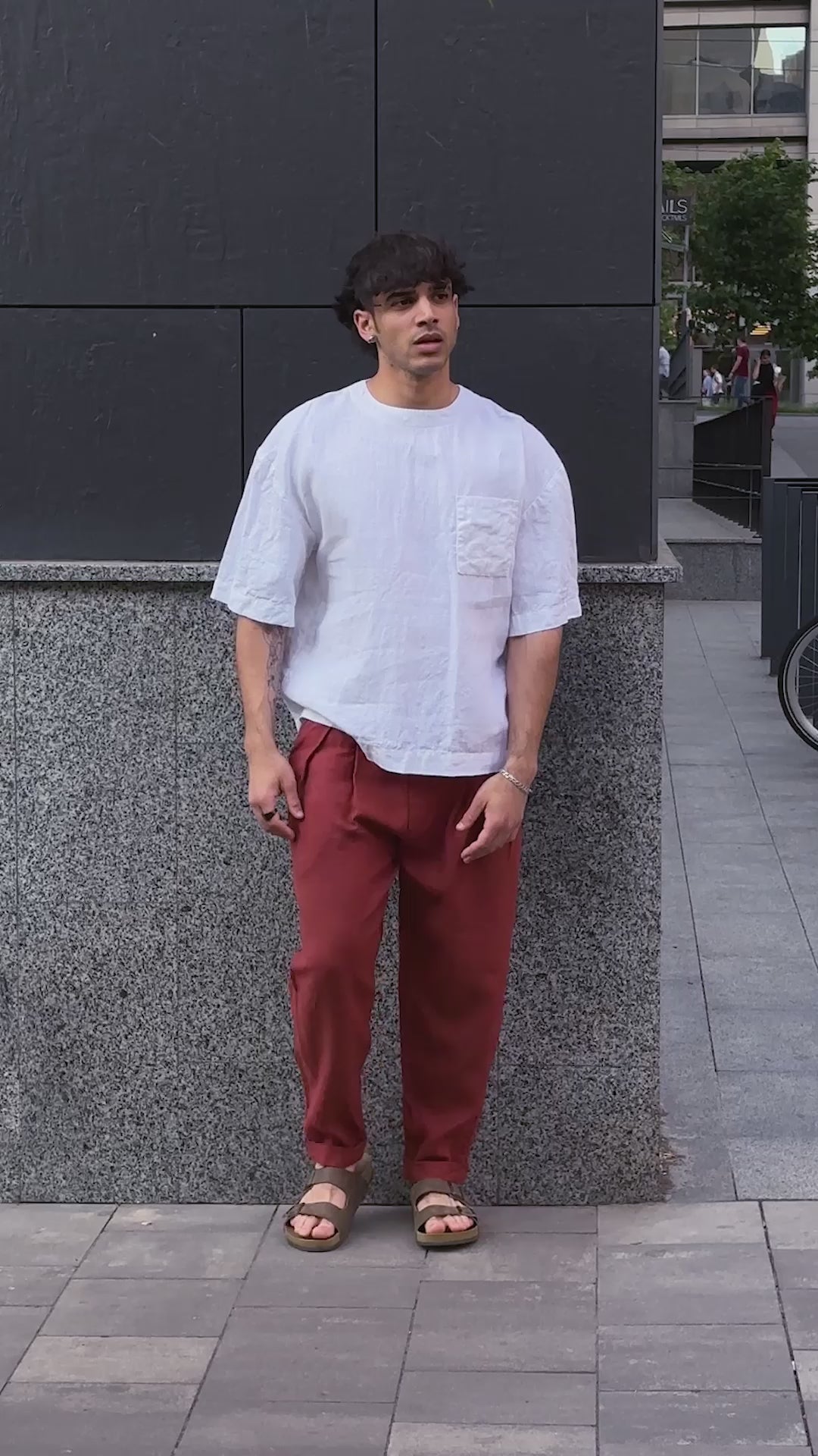This T-shirt was designed for those who like a loose fit and a narrow neck. Since linen fabric does not stretch, we added a neat snap on the back.