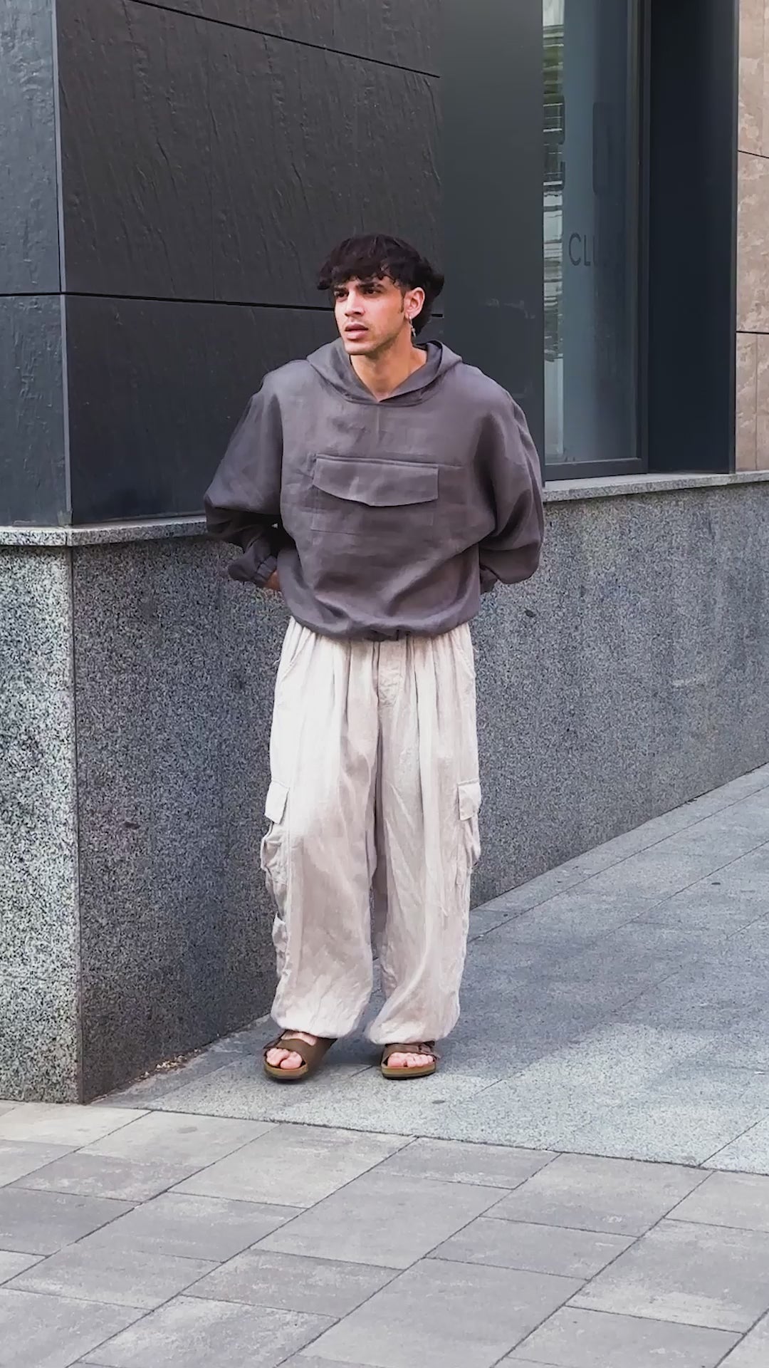 Oversized linen hoodie KUWA in Dark grey