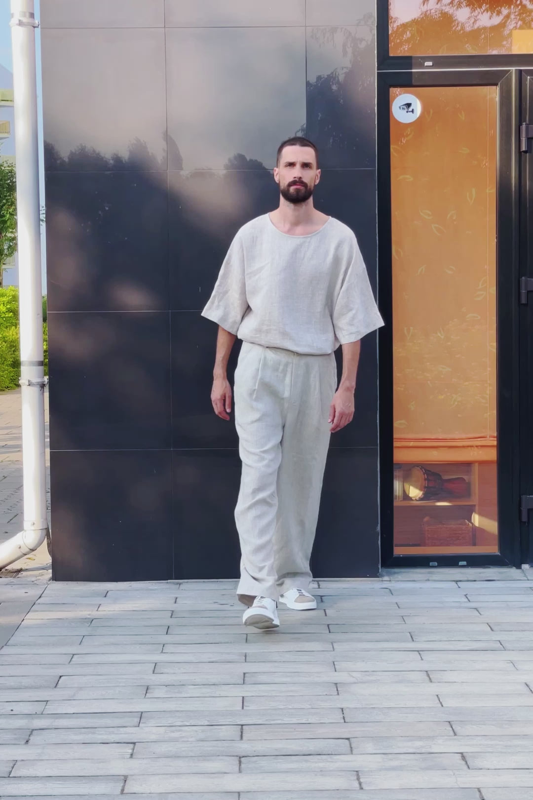 Comfortable and stylish men’s linen pants. These pants are versatile, they are cozy and comfortable outdoors as well as at home. The fabric is breathable and takes the body shape, over time it becomes softer.