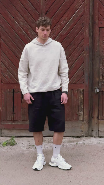 Made from 100% breathable, high-quality linen, this hoodie features a loose, airy fit with a unique tie hem, allowing for an adjustable silhouette. The minimalist design and the lightweight feel make it perfect for layering in any season.