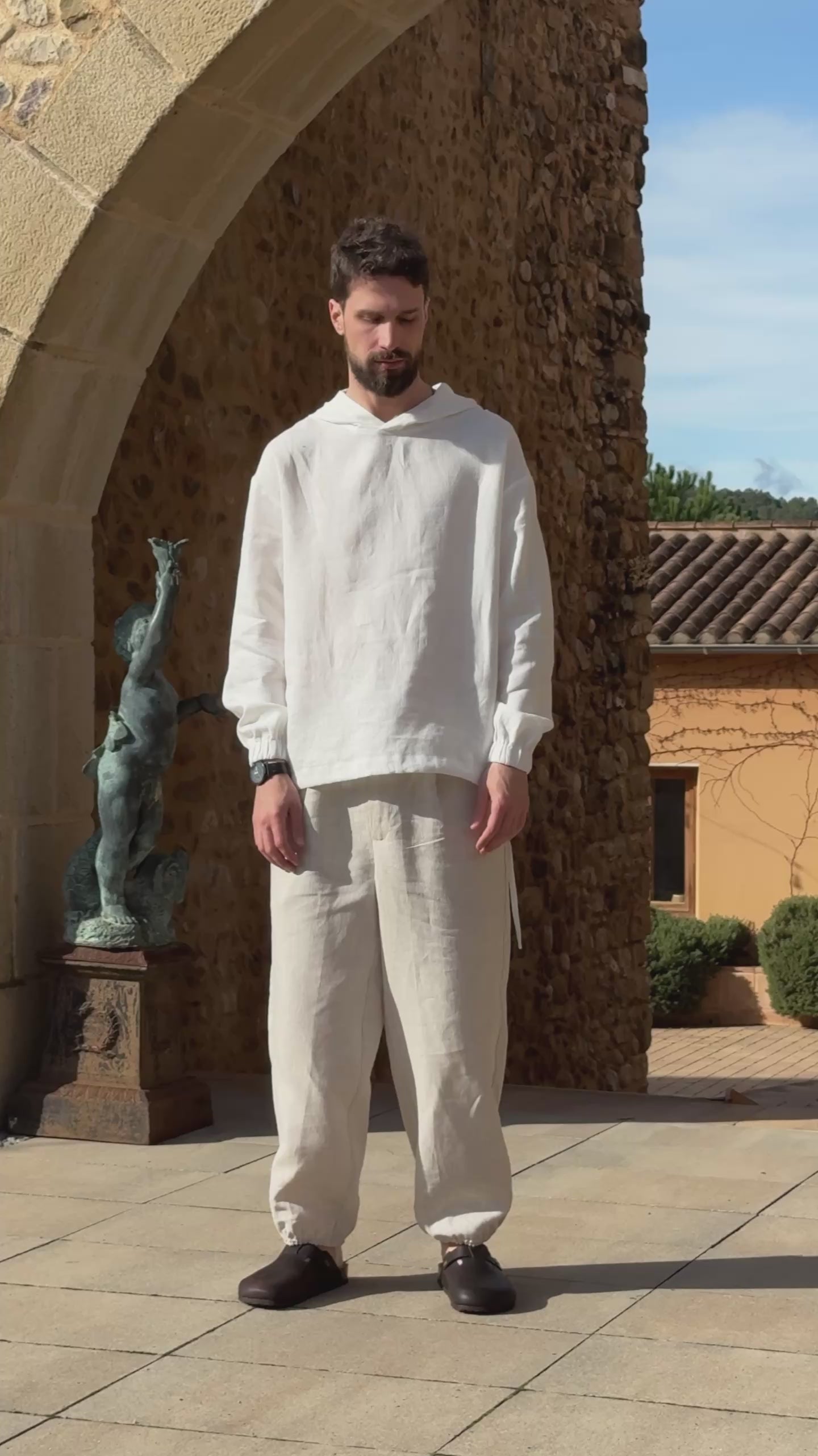 Made from 100% breathable, high-quality linen, this hoodie features a loose, airy fit with a unique tie hem, allowing for an adjustable silhouette. The minimalist design and the lightweight feel make it perfect for layering in any season.