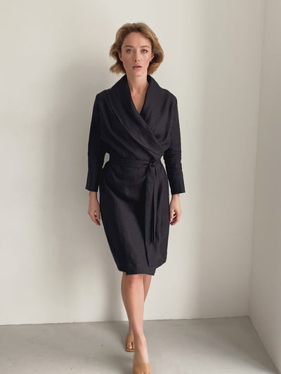 Women’s Linen Bathrobe Calla in Black