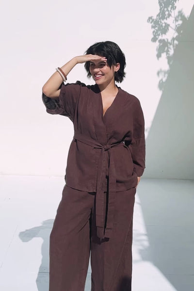 Women’s Linen Kimono Jacket ALTEA in Brow