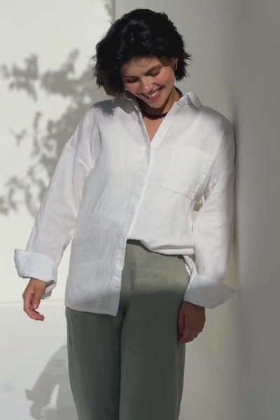This oversized linen shirt is designed for a relaxed yet elegant silhouette. Made from 100% European linen, it drapes beautifully, offering breathability and natural softness. Perfect for layering over tops, pairing with trousers or shorts, or wearing on its own as a beach cover-up.