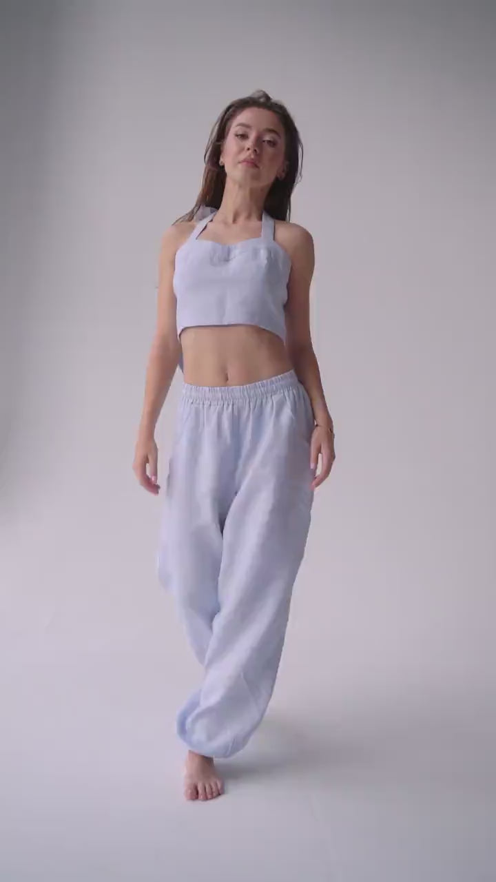 Women’s Linen Pants PEONY in Light blue