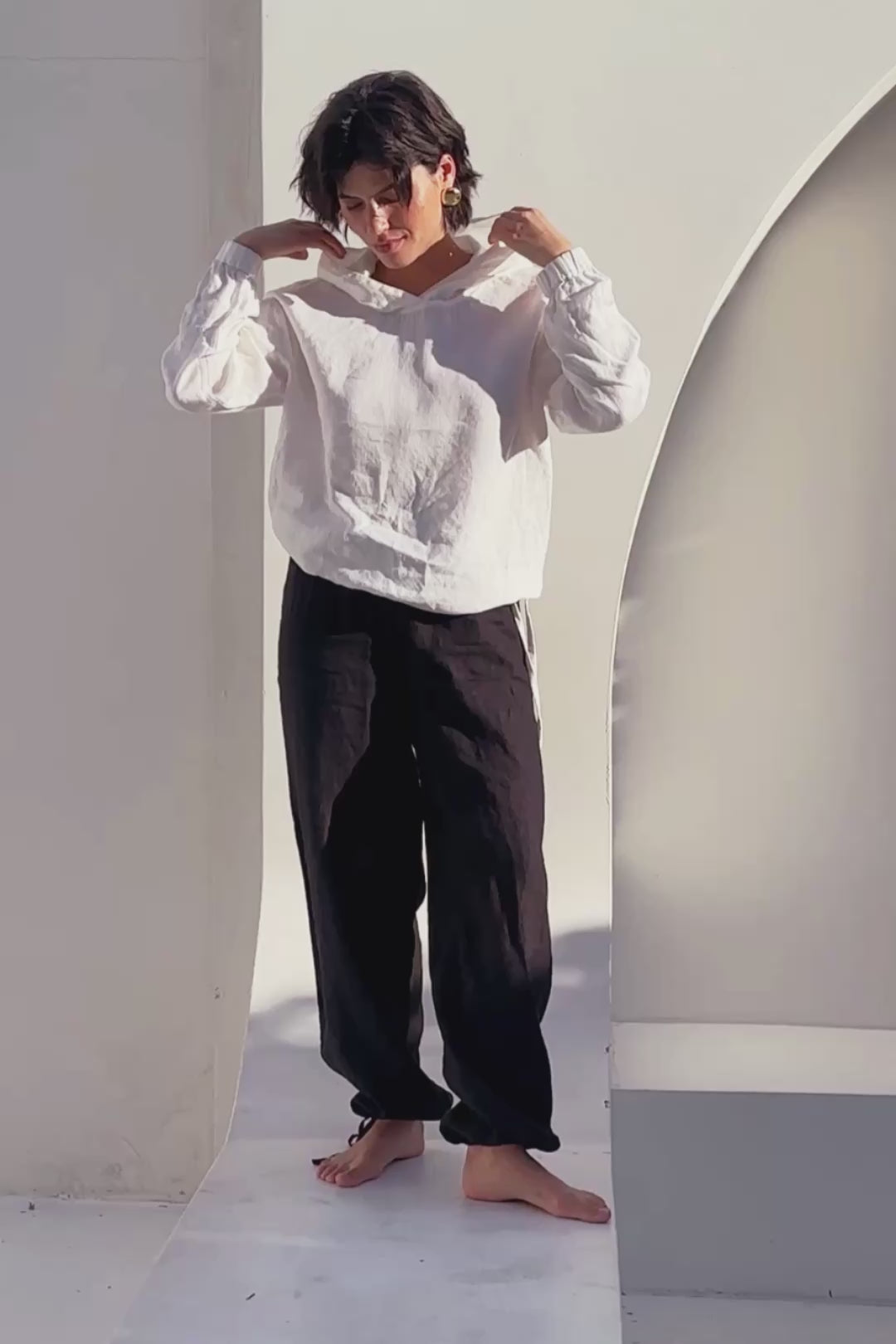 These relaxed-fit linen pants combine effortless comfort with a touch of modern edge. The adjustable drawstring cuffs let you wear them loose for a laid-back silhouette or cinched at the ankle for a more defined look.
