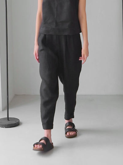 Women’s linen pants with pleats Black