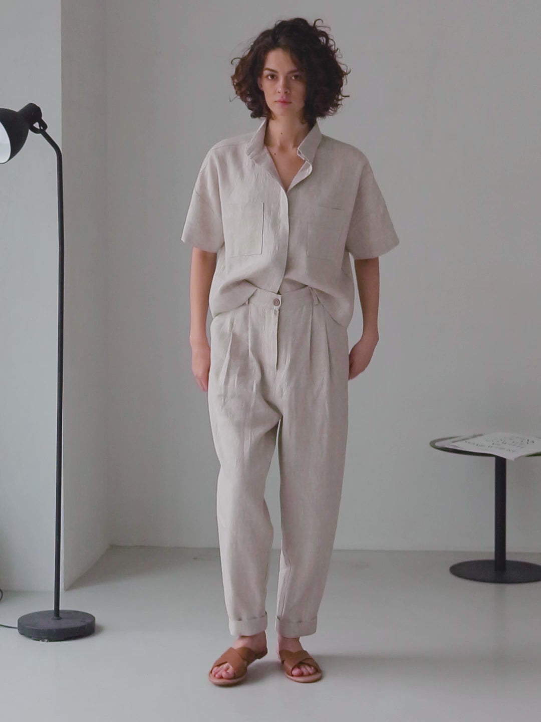 Women’s Linen Pants with Pleats CEDAR in Beige