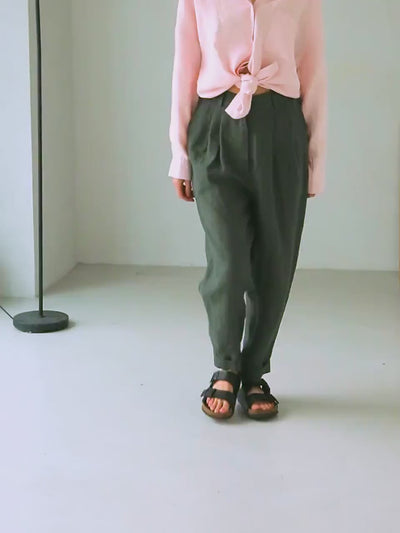 Lightweight and breathable, these women’s high-waisted linen pants are perfect for warm-weather comfort and effortless everyday wear. The relaxed tapered silhouette makes them an ideal choice for lounging, travel, or casual summer outings.