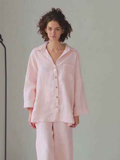 This oversized linen shirt is your go-to for laid-back elegance. Designed with a soft drape, wide 3/4 sleeves, and a chest pocket, it offers the perfect blend of comfort and structure. Style it as a lightweight layer, beach cover-up, or minimalist staple for your everyday wardrobe.