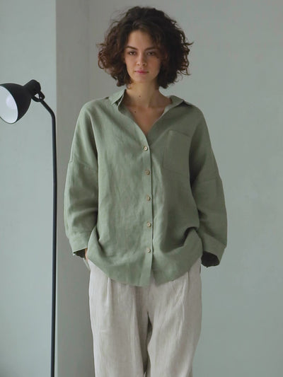 This oversized linen shirt is your go-to for laid-back elegance. Designed with a soft drape, wide 3/4 sleeves, and a chest pocket, it offers the perfect blend of comfort and structure. Style it as a lightweight layer, beach cover-up, or minimalist staple for your everyday wardrobe.
