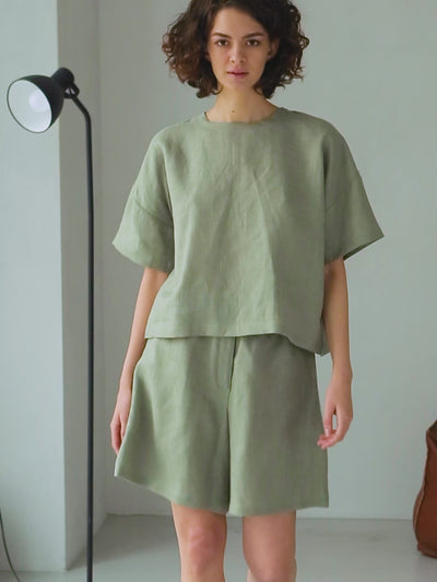 Lightweight and breathable, these relaxed-fit linen shorts are made for effortless comfort on warm days. The clean design and soft fabric make them ideal for lounging, sleeping, or wearing as part of a minimalist summer look.