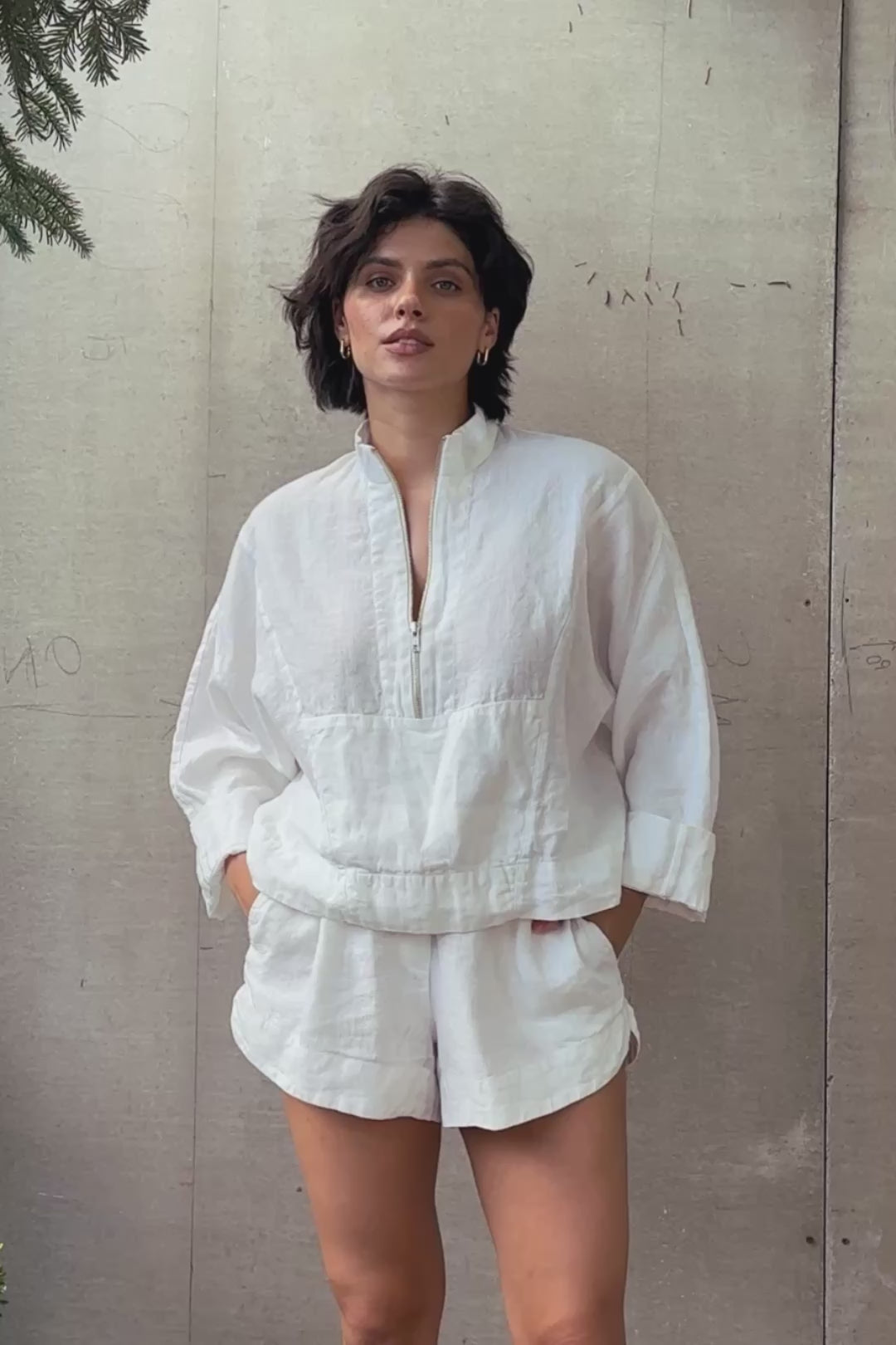 These minimalist linen shorts offer an easy, everyday feel with their relaxed cut and high-rise elastic waistband. Soft, breathable, and effortless, they create a clean, flattering look that pairs well with linen tops, shirts, or pullovers — a simple go-to piece for warm days and laid-back summer plans.