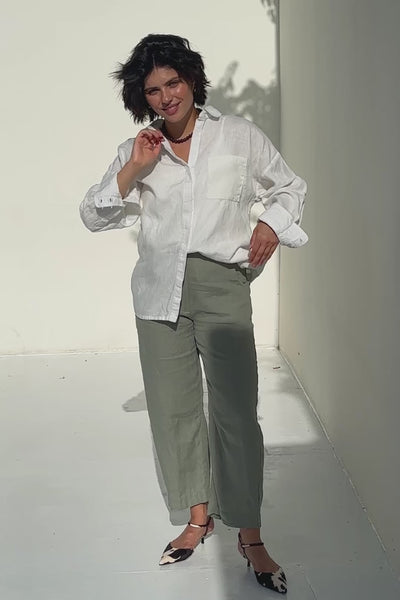 Women’s Linen Straight-Leg Pants MENTA in Olive