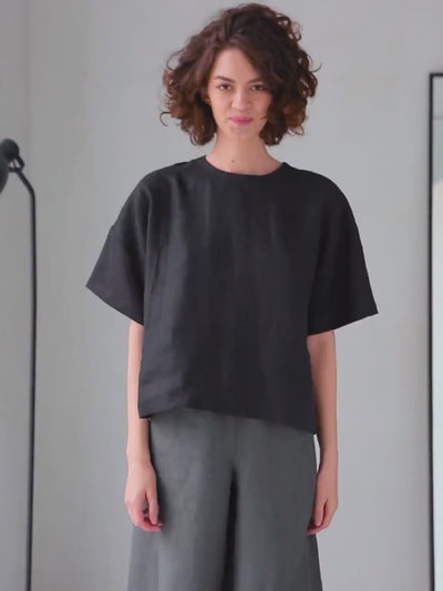 Women's Linen T-Shirt ASTER in Black