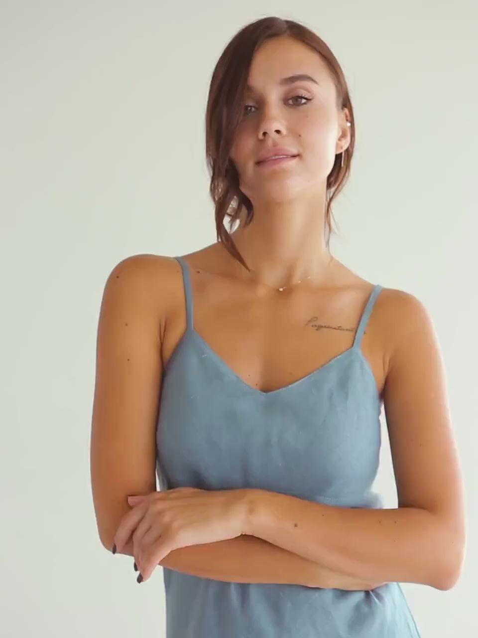 This elegant linen slip dress is designed for lightness and freedom. Featuring a soft ruffle at the hem and slim adjustable straps, it’s perfect for sunny days, barefoot strolls, or special summer occasions.